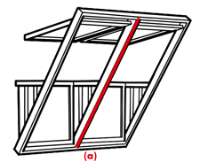Twee bovenvensters met scharnierpunt aan de bovenzijde kunnen traploos worden uitgezet tot 45° ten opzichte van de dakhelling. De bovenvensters worden bediend d.m.v. een bedieningshandgreep aan de onderzijde van het draaiende gedeelte.